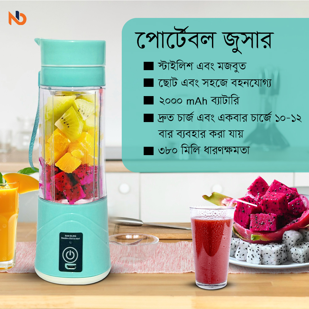 যেকোনো জায়গায় ফ্রেশ জুস উপভোগ করুন এই পোর্টেবল জুসার দিয়ে, যা স্বাস্থ্যকর জীবনযাপনের জন্য আদর্শ! ২০০০mAh ব্যাটারি সহ এটি পূর্ণ চার্জে ১০-১২ বার ব্যবহারযোগ্য, তাই যেকোনো সময় স্বাস্থ্যকর পানীয় তৈরি করা সম্ভব। দ্রুত ব্লেন্ডিং, ৩৮০ml ধারণক্ষমতা, এবং ডাবল প্রেস অপশন থাকায় এটি খুব সহজেই ব্যবহারযোগ্য। বিভিন্ন রঙে পাওয়া যায়, যা স্টাইলিশ ও কার্যকরী—সক্রিয় জীবনধারার জন্য নিখুঁত সঙ্গী!